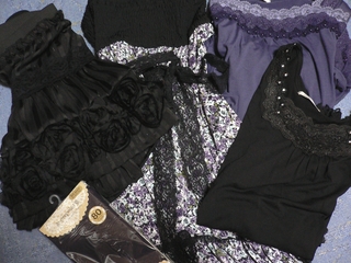 黒のスカートは裾がバラのコサージュになってて可愛いし嵩増し用にも使えて便利。
